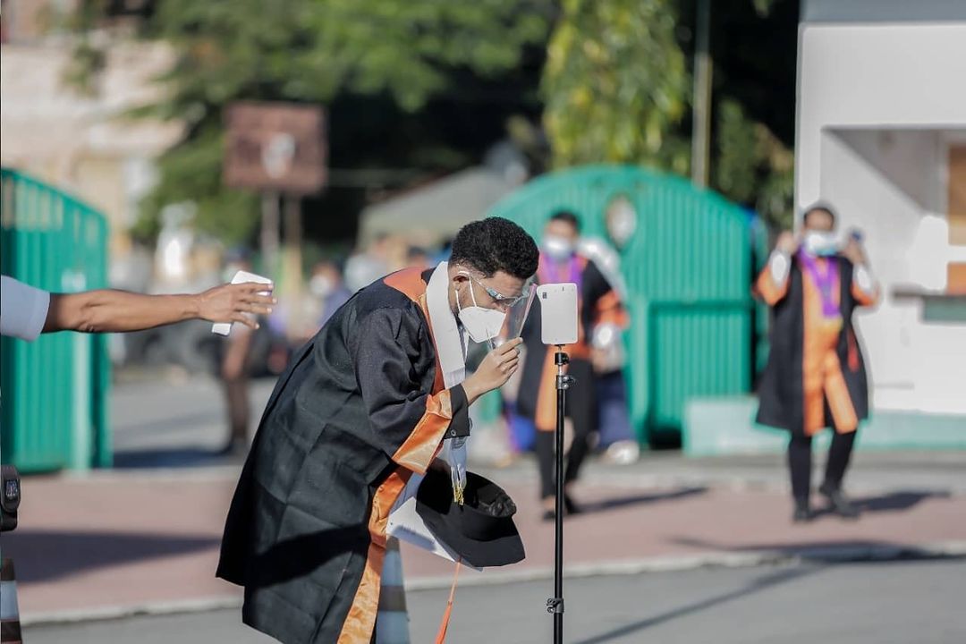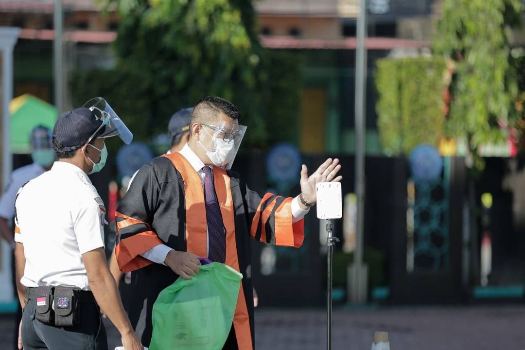 Prosesi wisuda dilakukan tiga sesi dan para wisudawan juga tidak didampingi orang tua. Pihak panitia menyediakan fasilitas live streaming via youtube untuk orang tua wisudawan yang ingin mengikuti prosesi acara.