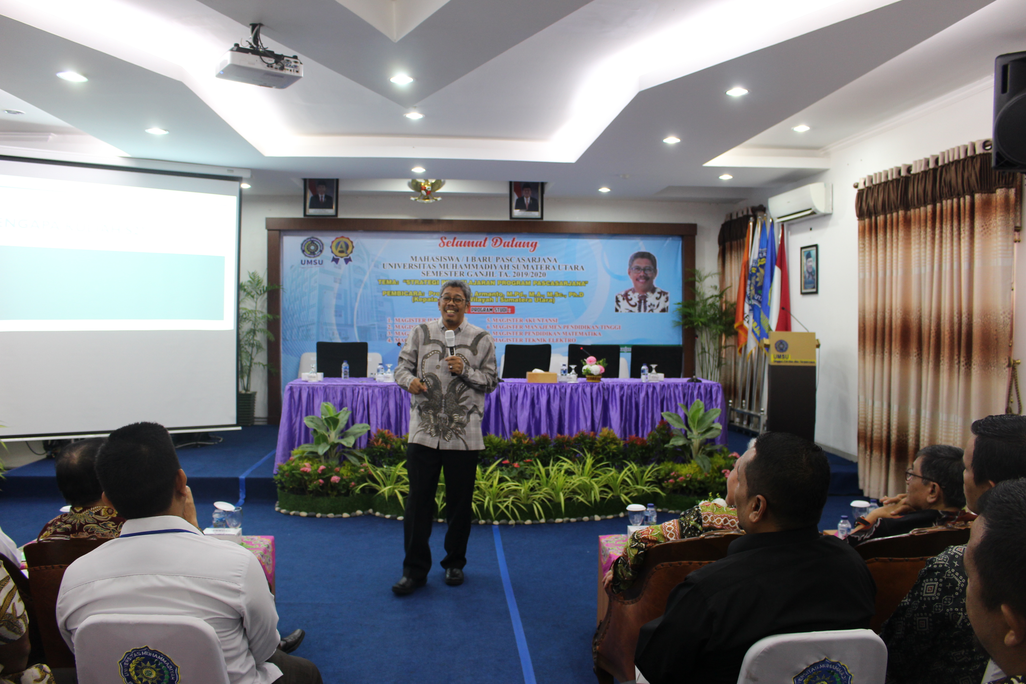 Pascasarjana-UMSU || Ratusan mahasiswa baru Pascasarjana Universitas Muhammadiyah Sumatera Utara (UMSU) Semester Ganjil TA 2019/2020 mengikuti kegiatan Kuliah Umum Perdana di Auditorium Pascasarjana UMSU, Jl Denai 217 Medan, Sabtu (5/10).